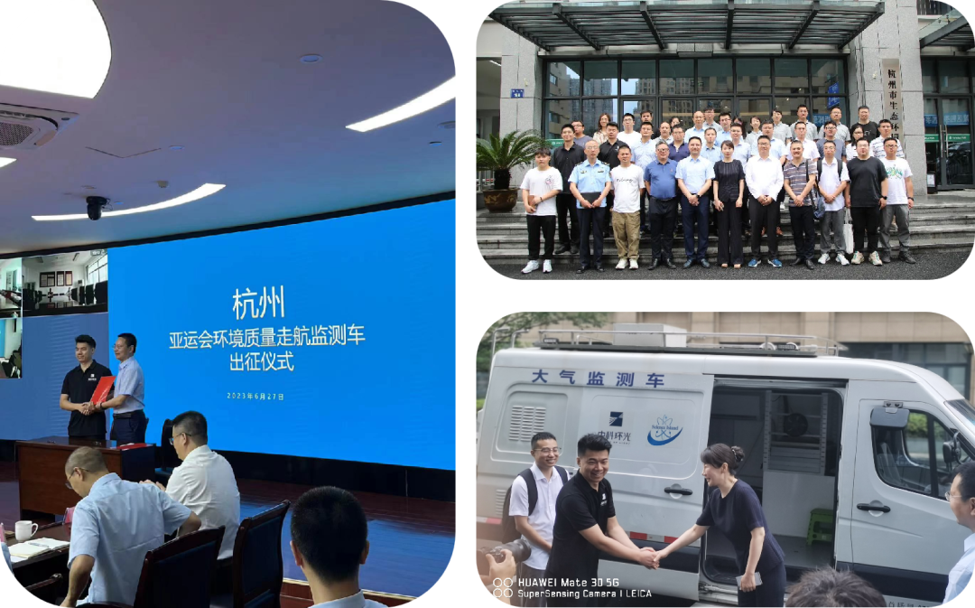 2023年6月27日上午,杭州市生态环境局举办亚运会环境质量走航监测车出征仪式,市局相关领导出席并讲话,杭州监测中心、市局大气处、生态处、执法队、各地分局相关负责人参加,合肥中科环光科技有限公司作为此次亚运保障志愿服务的走航监测技术单位受邀参加。